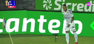 5分钟之后,桑托斯队获得右侧角球机会,这一次依然由内马尔来主罚,只见内马尔再次送出过顶妙传,后点的蒂基尼奥-苏亚雷斯再次头槌攻门得手帮助桑托斯队取得3球领先优势。